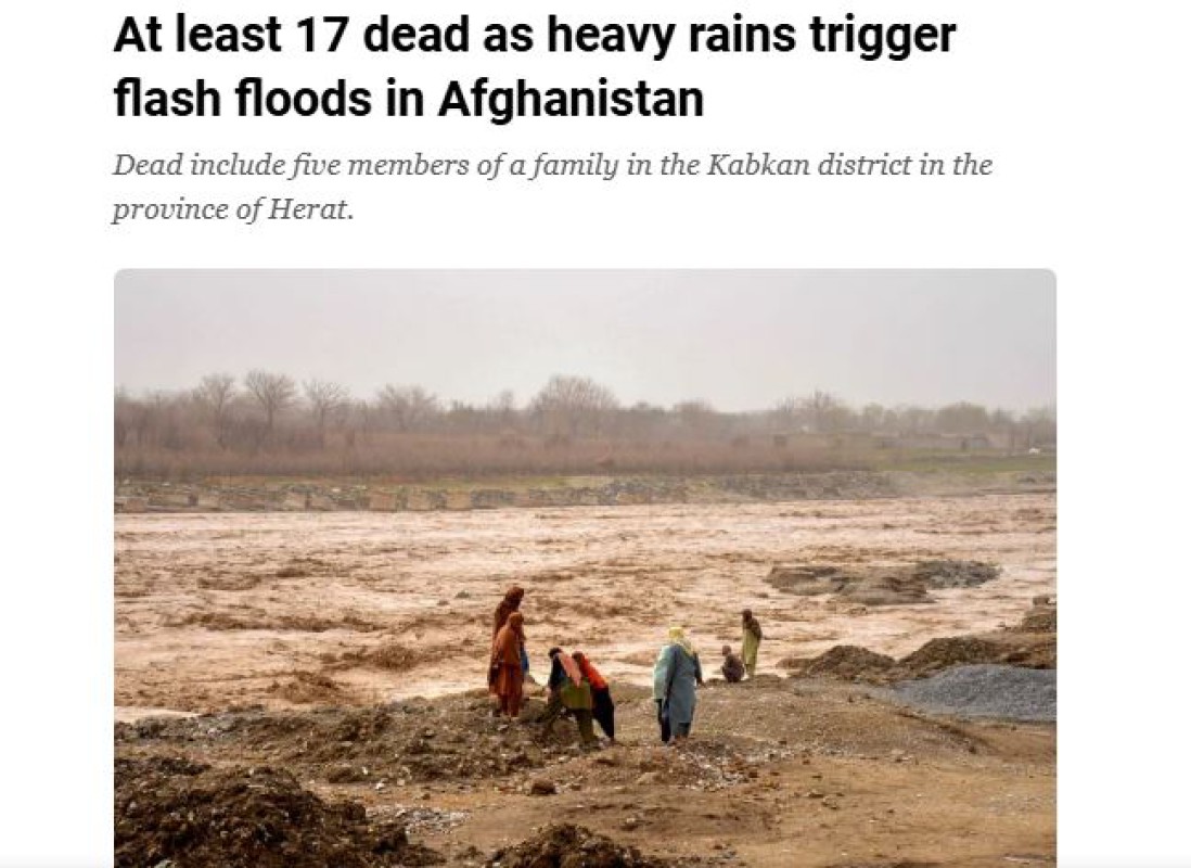 အာဖဂန်နစ္စတန်နိုင်ငံမှာ ရုတ်တရက် ရေကြီးမှုတွေကြောင့် အနည်းဆုံးလူ(၁၇)ဦး သေဆုံး