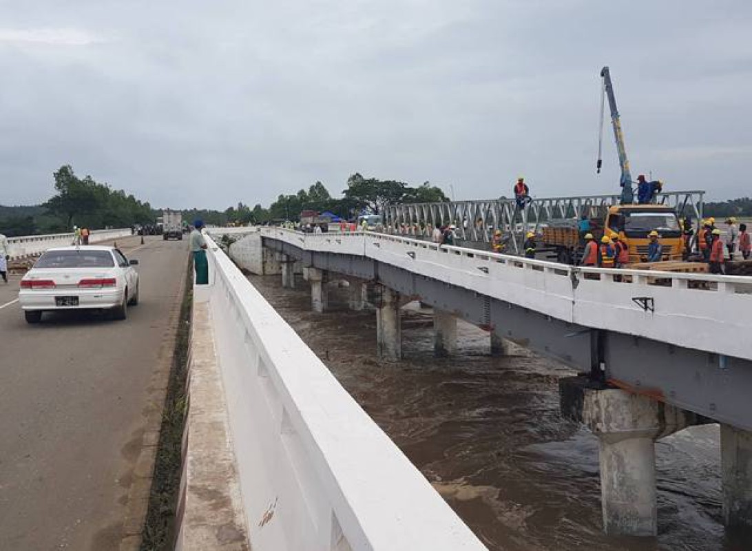 “တံတားကတော့ မတ်လကုန်လောက်ပြီးဖို့ အားထည့်ပြီးလုပ်နေကြတယ်။ ချဉ်းကပ်လမ်းရော တံတားရော အပြီးအစီးဆိုရင် နောက်ဆုံးသင်္ကြန် လောက်ထိရောက်သွားနိုင်တယ်ထင်တယ်။ နေ့ရော ညရော လုပ်နေကြပါတယ်။ အခုက သံပေါင်၊ ရက်မတွေ တင်နေပြီ။ ရာခိုင်နှုန်းအားဖြင့် (၇၀) ရာခိုင်နှုန်း လောက်ပြီးပြီ။ တံတားတစ်ခုလုံးအတွက် (၇၀) ရာခိုင်နှုန်းက ပြီးပြီ။ ချဉ်းကပ်လမ်းက တံတားရဲ့ Abutment (မြေကာနံရံ ) တွေပြီးမှ စလို့ရမှာ။ ချဉ်းကပ်လမ်းကတော့ မြန်ပါတယ်။ သူတို့ တတ်နိုင်သရွေ့ တော့လုပ်နေကြတယ်” ဟု ပြောသည်။